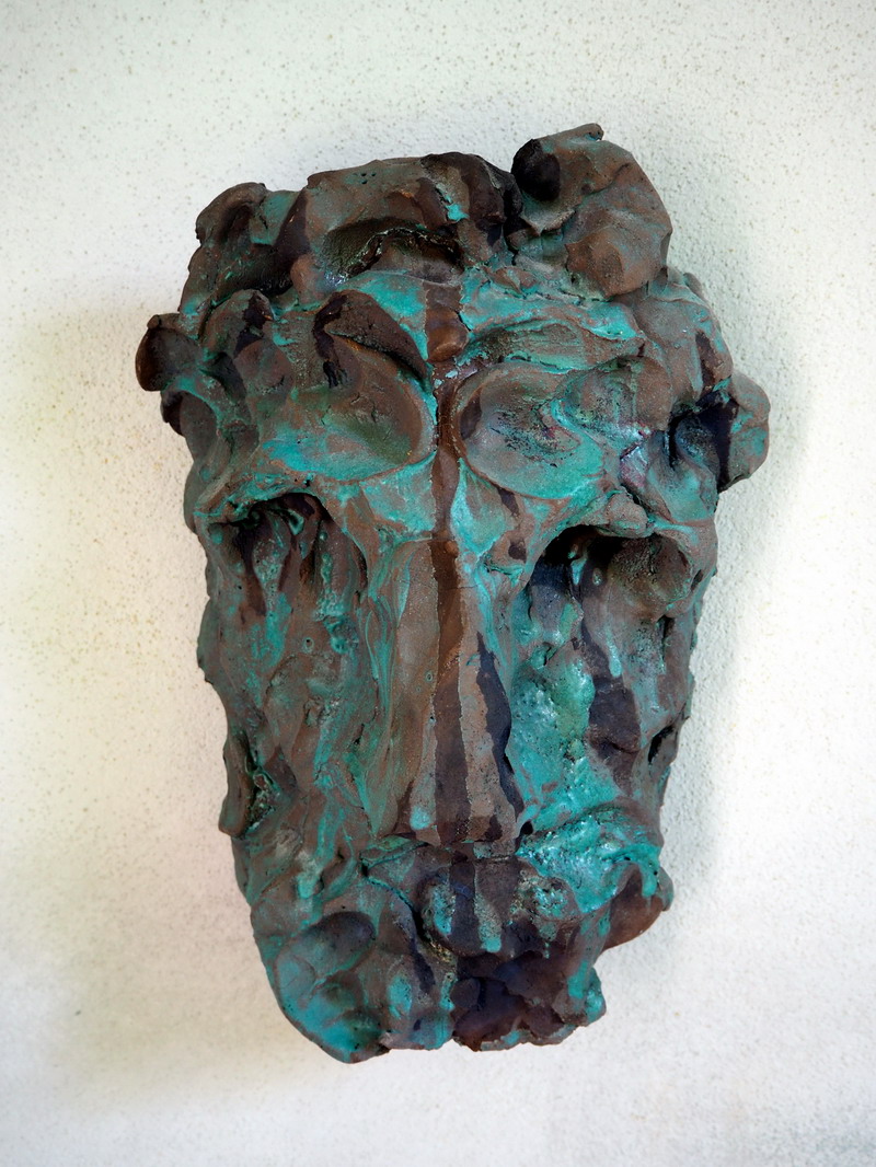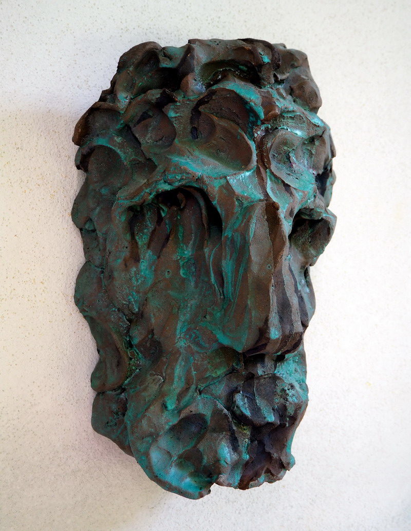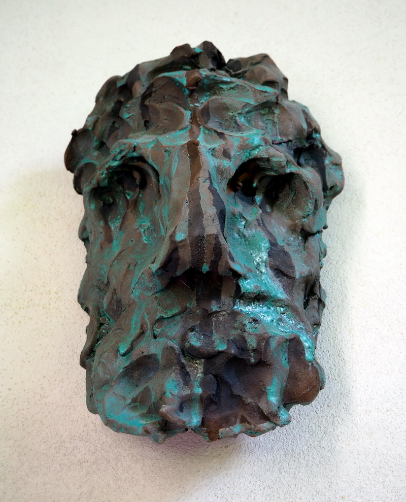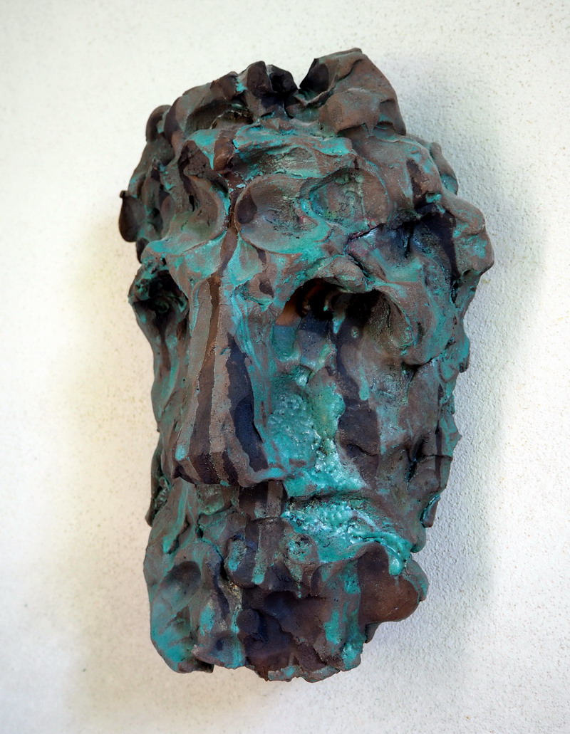 La tecnica raku ha poi completato ciò che lo scavo aveva intuito. Il fuoco ha inciso le sue tracce, il fumo prodotto durante il processo di riduzione dell'ossigeno ha impregnando l'argilla e disegnato ossidazioni imprevedibili, e le patine verdi ramate sono riaffiorate come memorie antiche, come pelle che ha attraversato il tempo. Le crepe che attraversano il volto non sono ferite, ma rivelazioni: segni della trasformazione, di un’identità che si affaccia tra caos, vuoto e luce.