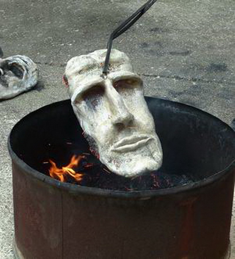 «Da questo volto di argilla raku emerge il silenzio antico della materia che diventa emozione.»