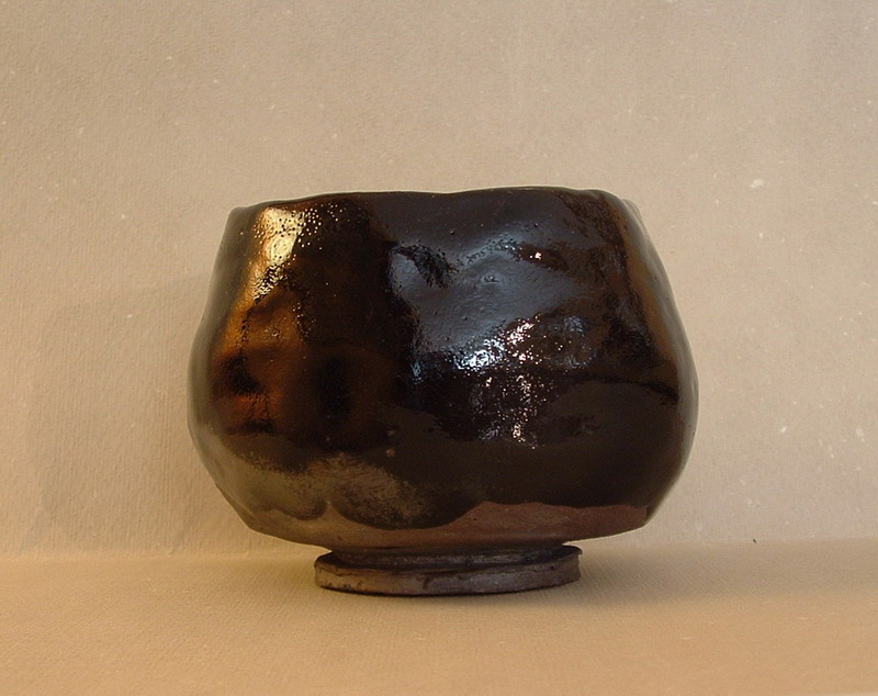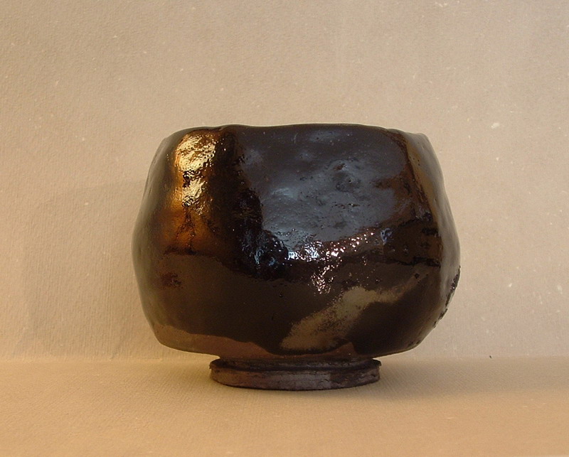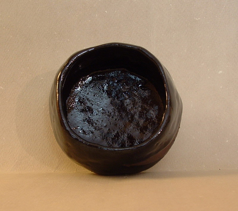 In questo chawan, che ho chiamato “Ombra della Terra”, ritrovo la memoria primordiale dell’argilla e la resa imprevista del fuoco raku. La forma, volutamente irregolare, si ispira ai Kuro Raku del XVI secolo, alle ciotole dalle pareti vive e quasi pulsanti create nella scuola dei primi maestri Raku. Mentre modellavo questa tazza, non cercavo la perfezione ma la verità della materia: un profilo che respira, una superficie che accoglie luce e ombra come fossero stati d’animo, già la vedevo realizzata in colore nero.